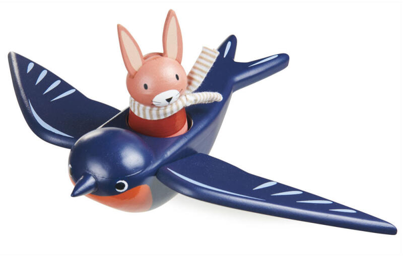 Swifty Bird a Tender Leaf Toys-tól Ez a kis fából készült fecske Spud pilóta nyuszival a hátán Merrywood Tales karaktereink folyamatosan bővülő gyűjteményének része. Spud, a pilóta neve rá van írva a talpára és méretében megegyezik a Merrywood Tales gyűjteményünkben található vitorláshajó, rózsafaház, nyuszimesék és medvemesék méretével. Ez a játék fejleszti a