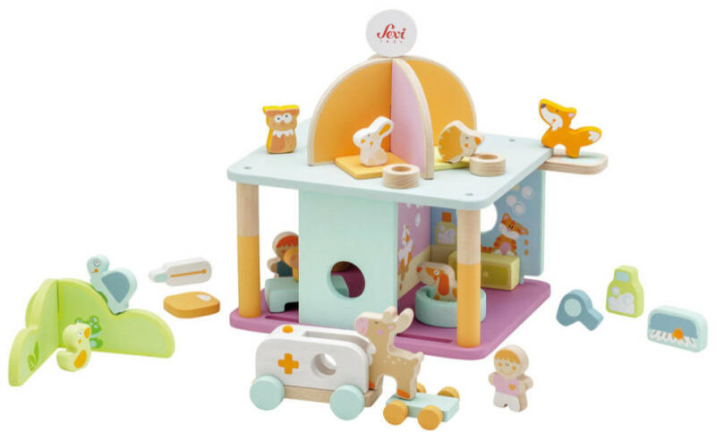 Sevi úgy dönt, hogy a környezettel összhangban dolgozik csak FSC® tanúsítvánnyal rendelkező alapanyagokat használ. A felhasznált fa és papír gyártása és a játék csomagolása is környezetbarát. Termékleírás Különböző környezetekben gazdag: kezelési klinika, ápoló szoba, mentő a szállításhoz, éjszakai osztály a többi az állat számára. Egy játék, ahol megtan
