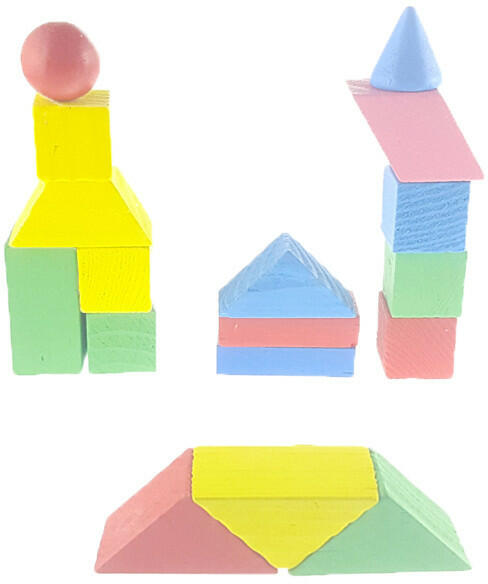 Fa építőkocka zacskóban 17 darabos építőkocka készlet. Kiélheti a kisgyerek a kreativitását, és színes várakat építhet belőle.