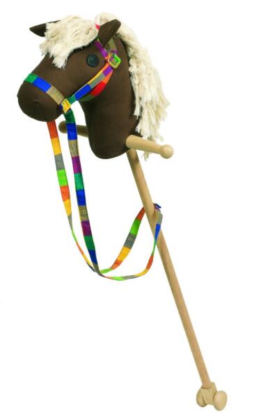Fa játék barna ló gurulós lábbal, pamut fejjel, sörénnyel és kantárral. Anyaga: fa Méret: 97 cm
