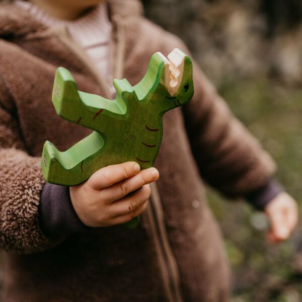 T. rex, avagy a legismertebb dinoszaurusz Fenntartható, prémium minőségű fajáték a német Holztiger márkától. A Holztiger fajátékokkal mesés a játék: a selymesre csiszolt fa kellemes a kicsi kezekben. A dinoszaurusz gondos kézimunkával, Európában készül. Szép, mély színét vízbázisú festékkel érik el, mely teljesen gyerekbarát, nem oldódik izzadságra, nyálra. A Hol
