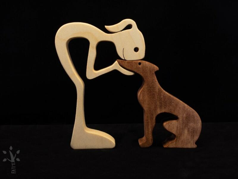 Kedves kis ajándék lehet AGÁR kutyust kedvelő gyermeknek , de felnőttnek is ez a két elemből álló dekoráció. A kutyus és a barátja egymásba illeszthető. A nagy méretű kutyus anyaga juhar és pácolt juhar, a kis méretű figurák cseresznyefából készültek. Felületkezelése: paraffinolaj. Kétféle méretben készítjük. A méretválasztást a jobb oldalon találja. Egészsé