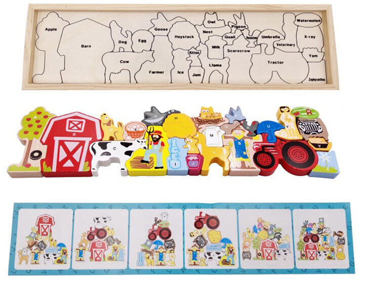 Fa állatos kirakó Egyik oldalán az angol ABC betűi, a másik oldalon számok találhatók, amik segítségével játékosan tanulhatók a betűk és számok.