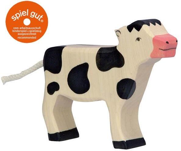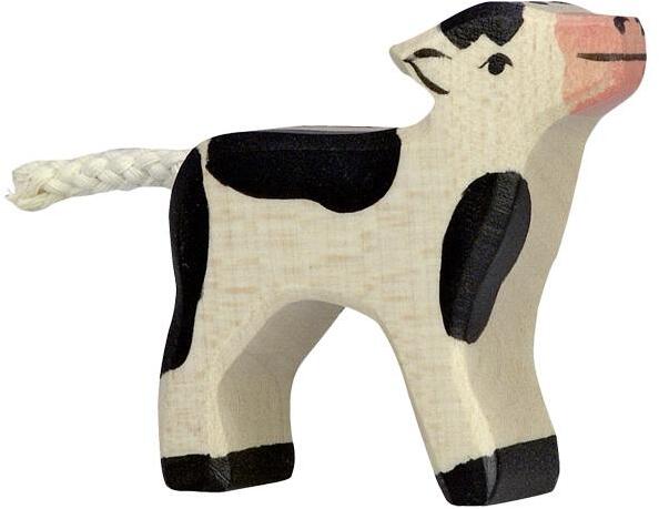 HOLZTIGER 80006 borjú fa figura. Hosszú évek óta képviselik a HOLZTIGER figurák a magas minőségű fából készült játékokat szinte egyedüliként az európai piacon. Magas értéket képviselnek a juharfából és bükkfából készült, kézzel kerekített és egyedileg, kézzel festett figurák. A játékok minden szabványnak megfelelnek, non-toxikus, vizes bázisú festékkel kezel