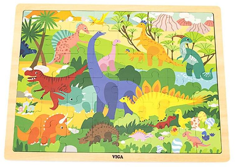A puzzle izgalmas világát a dinoszauruszok témája hozza el neked! A csomag 48 egyedi, számozott puzzle-darabot tartalmaz, valamint egy alátétet, amely a kép másolatát tartalmazza, így segít a kisebb gyermekeknek a kirakós egyszerűbb összerakásában. A játék teljes egészében bükkfából készült, és környezetbarát, nem mérgező festékekkel, lágy színekkel van díszítve
