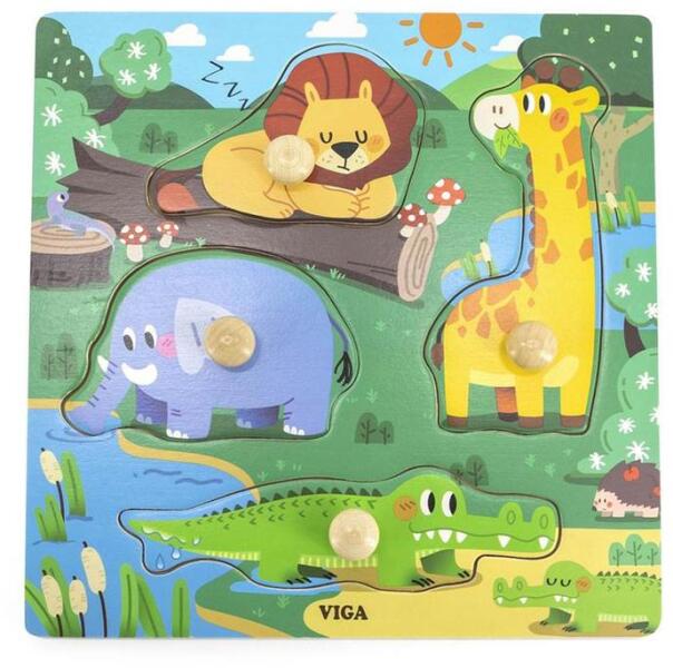 Ez a gyönyörű, vidám képpel díszített fa kirakó játék a Viga márkától nemcsak esztétikus, hanem fejlesztő hatású is. A puzzle segít a gyermekeknek a kombinációs készségek, az emlékezet, a térlátás és a problémamegoldó képességek javításában. A kicsik az illusztrációkat a megfelelő sorrendbe helyezik, így gyakorolják az asszociációs készségeiket. A játék