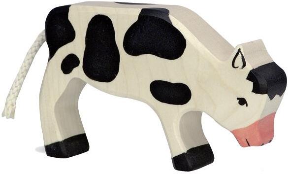 HOLZTIGER 80004 fekete fejű, legelő borjú. Hosszú évek óta képviselik a HOLZTIGER figurák a magas minőségű fából készült játékokat szinte egyedüliként az európai piacon. Magas értéket képviselnek a juharfából és bükkfából készült, kézzel kerekített és egyedileg, kézzel festett figurák. A játékok minden szabványnak megfelelnek, non-toxikus, vizes bázisú fest