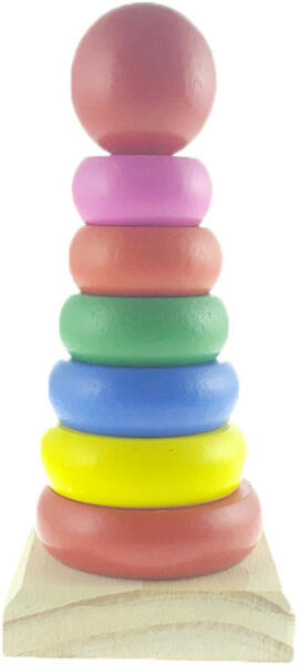 Fa piramis karikából 7db-os Mérete:140mm Kiváló játék a színek - méretekkel való ismerkedéséhez 7db-os Mérete:140mm Anyaga: fa