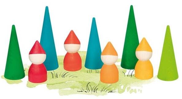 Goki 58468 törpeerdő kreatív építőjáték 9 színes, különlegesen kezelt fa elemekkel. Goki kreativitásra ösztönző fa formái, a színes törpék és a gúla alakú fák már kétéves kortól ajánlott, montessori elven alapuló nyílt végű játék. A szeretettel megtervezett törpeház juharfából készült. A semleges megjelenésű figurák serkentik a képzeletet és a kreativit