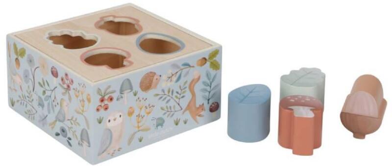 Mit kell tudni a játékról? Little Dutch formabedobó kocka - Forest Friends Fából készült, meseszépen díszített formaberakó doboz másfél éves kortól. A Little Dutch holland játékgyártótól megszokott aprólékos, valósághű állatos és növényes képek igazán mutatóssá és izgalmassá teszik a készségfejlesztő fajátékot. A kék és barna szín dominál a játékban,