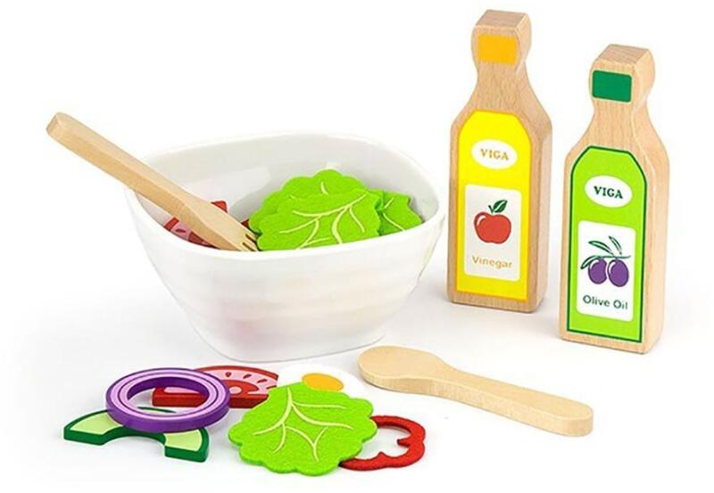 Valami izgalmas újdonság a gyerekeknek... Egy kis szakács készlet... Ez a fantasztikus szett tökéletes a főzős játékokhoz, receptekkel, amelyek segítségével gyermeked ízletes salátát készíthet, ami jól mutat. A játék során gyermeked táplálkozási tudatossága fejlődik, segítve a egészséges étkezési szokások kialakítását. A szett tartalmaz: - tál, - fa villa és k