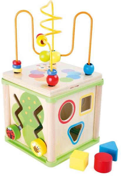 Mit kell tudni a játékról?Fajáték center, minden oldalán más játék. Formaberakó, golyóvezető, fogaskerekes, vonalhúzogatós és óra játék. A fa játékcenter készségfejlesztő kocka mérete kb. 15 x 15 x 29 cm. Ajánlott: 1 éves kortól Játékosok száma: 1 fő Nem találtad meg amit keresel? Vagy körülnéznél hasonló termékek között? Kattints arra ami érdekes lehet: fe