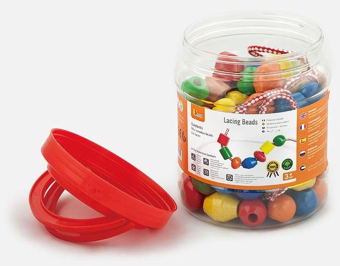 Fedezd fel a VIGA színes, fából készült gyöngykészletét, amely kiválóan alkalmas fűzéshez, praktikus csomagolásban érkezik. A csomagban 90 darab színes és különféle formájú korong található, valamint 5 darab fűzőfonal, amelyek segítségével a gyerekek végtelen mintákat és kombinációkat alkothatnak a fa korongok fonalon való mozgatásával. Ez a vidám és színes f