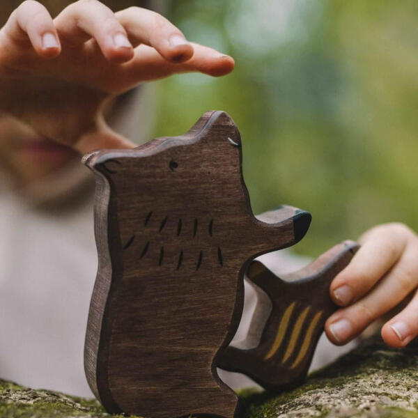 Barátságos vaddisznó mama és kis vadmalacBájos faállat család kedvezményes áron. Fenntartható, prémium minőségű fajáték a német Holztiger márkától. A Holztiger fajátékokkal mesés a játék: a selymesre csiszolt fa kellemes a kicsi kezekben. A fafigurák gondos kézimunkával, Európában készülnek. Szép, mély színeiket vízbázisú festékkel érik el, mely teljesen gye