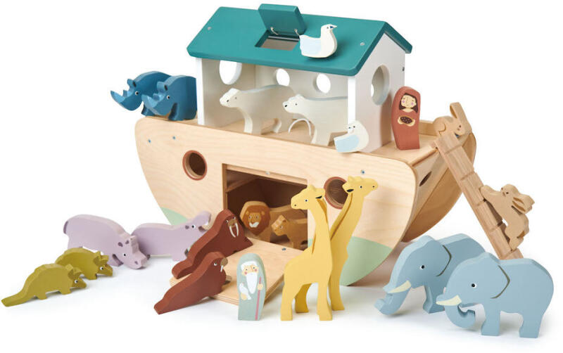 Tervezte és készítette a Tender Leaf Toys Tökéletes ajándék a kicsiknek! Ez a bárka és az állatok is tömör gumifából készültek, gyermekbarát festékkel festve. 10 pár nem egyforma állat teszi ezt a bárkát igazán különlegessé és egyedivé. A készlet tartalma: gyönyörű fa bárka létrával, Noé és felesége, 2 elefánt, 2 zsiráf, 2 oroszlán, 2 víziló, 2 jegesmedve