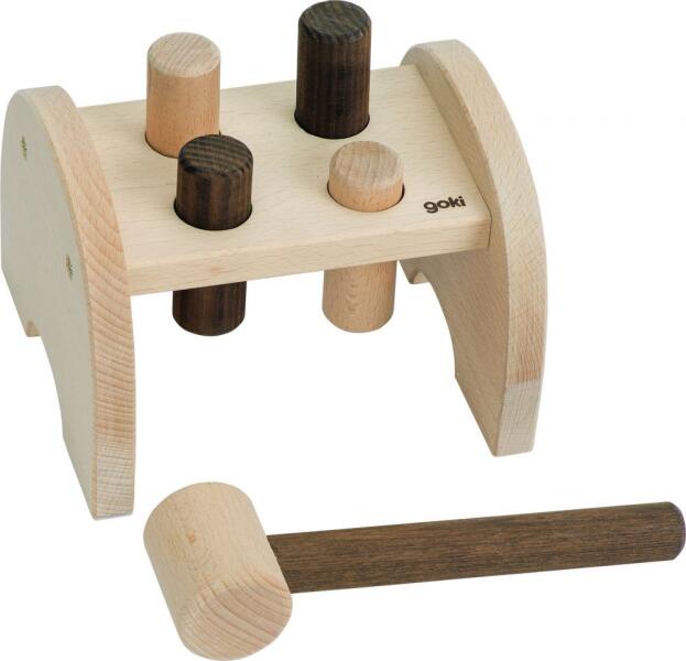 Kalapáló pad 4 szeggel és egy kalapáccsal. Anyaga: fa Méret: 15,5 x 14 x 10,5 cm