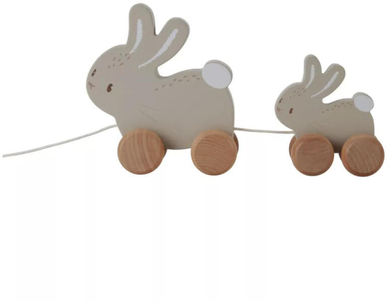 A kisnyuszik szeretnek követni és felfedezni a házat. Húzd meg a kötelet és kalandozzatok együtt! Ez a húzható játék tartós fából készült, és soha nem fog belefáradni a játékba. Ösztönzi a kicsit a járásra, és fejleszteni a gyermek motoros készségeit. Tömör fából készült, bababarát festékkel kezelve, így a legkisebbek számára is biztonságos játék. bababará