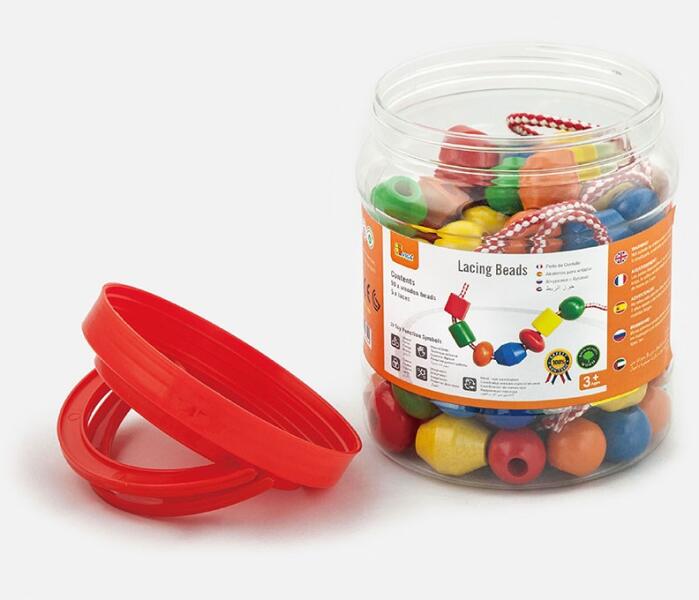 VIGA színes fából készült gyöngykészlet fűzéshez, praktikus csomagolásban. A csomag 90 darab különböző alakú és színű korongot és 5 darab fűzőfonalat tartalmaz. A gyerekek végtelen mintákat és kombinációkat hozhatnak létre a fa korongok mozgatásával a fonal mentén. Ez a színes fűzőkészlet vonzza a gyerekek figyelmét, akiknek kis kezei izgatottan fogják követni.