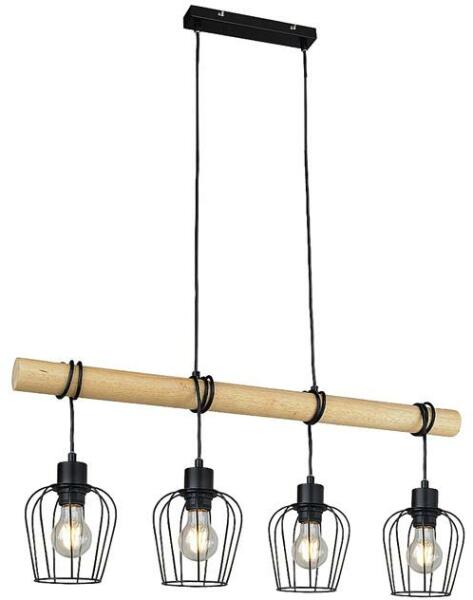 Az indusztriális stílusú Fabian négyes függeszték a nappali, az étkező, a konyha vagy akár a hálószoba berendezésének összetéveszthetetlen darabja lehet. A matt fekete lámpatestből és az ugyanilyen színű, rácsos búrákból álló modell fémből és fából készül, mely hosszúkás, szögletes dísztalp segítségével rögzíthető a mennyezetre. A négy lámpafej egy hoss
