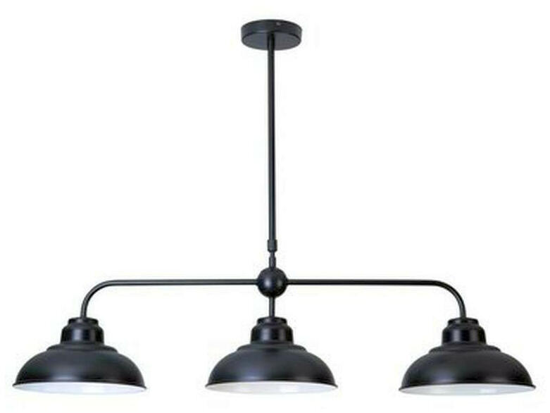 Az indusztriális stílus képviselői közé tartozó Dragan hármas függeszték nappalink, étkezőnk vagy hálószobánk berendezésének jellegzetes kiegészítője lehet. A fémből készült, matt fekete lámpatestet szélesen elterülő, ernyő formájú búrák egészítik ki, amelyek belül fehér színt kaptak. A lámpa kisméretű, kerek dísztalp segítségével rögzíthető a mennye