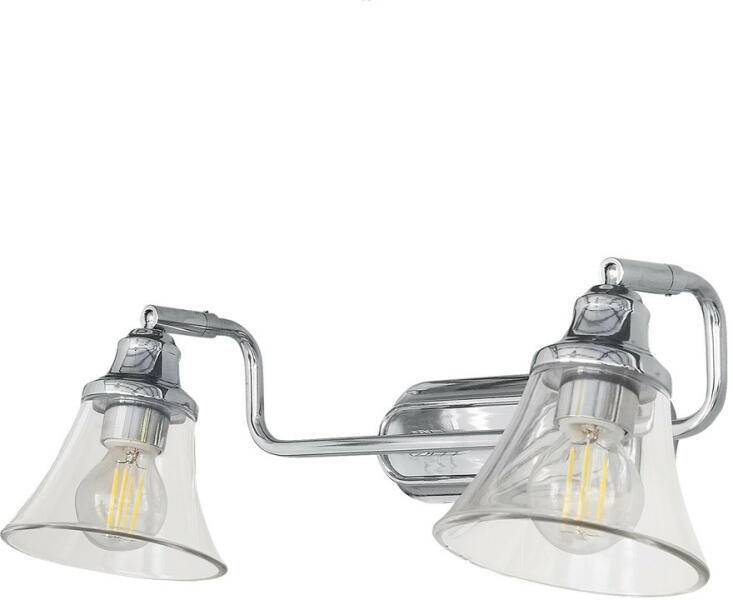 A klasszikus stílus képviselői közé tartozó Antoine kettes fürdőszobai fali lámpát azoknak ajánljuk, akik elegáns kiegészítőt keresnek fürdőjükbe. Ezt a modellt elhelyezhetjük a mosdó vagy a kád közelében, ahol hangulatos megvilágítást biztosít a lefekvést megelőző rituáléhoz. A krómszínű, fémből készült lámpatestet harang alakú, átlátszó üvegbúrák eg