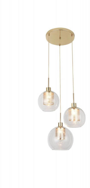 A Philana hármas függeszték arany színével és látványos dizájnjával mindazok tetszését elnyerheti, akik kedvelik a hagyományos alapformákat, ugyanakkor szeretik a mutatós, modern megoldásokat. A fémből készült Philana alul nyitott, gömb alakú üvegbúrái alatt egy-egy aranyszínű, méhsejt rácsozatú, hengeres elem rejti el a fényforrást. A nagyméretű, kerek dísztalpp