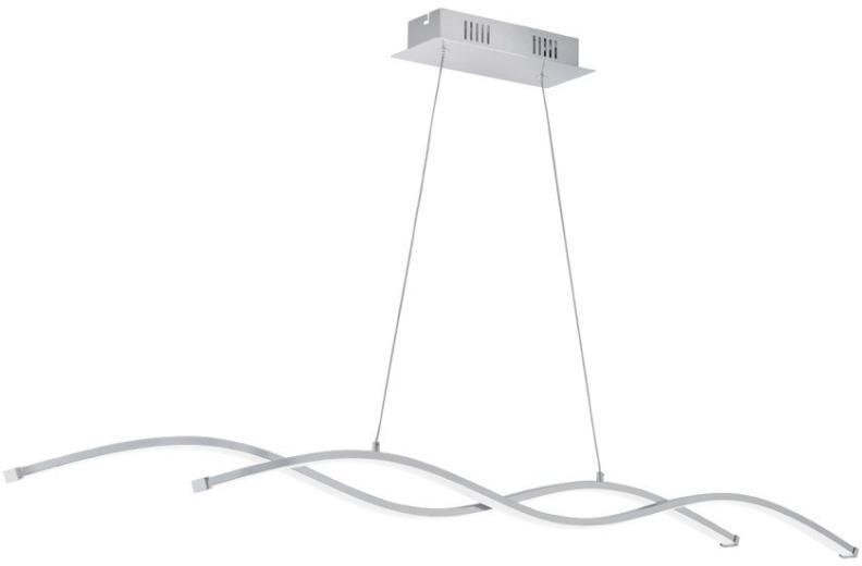Rövid ismertető Ezt a Lasana 2 kettes függesztett lámpát az Eglo gyártja. A fényt két hullám alakú 1200 mm hosszú, egymástól eltolt LED fénysáv biztosítja. Burkolata króm színű acél alapból és fehér színű műanyagból áll. A hullámok szélessége 80 mm, a maximális belógása pedig 1200 mm. A belógás magasságát te állíthatod: ha magasabbra szeretnéd húzni, a fel