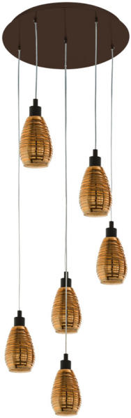 39508 EGLO SIRACUSA függeszték. A világitótestbe a E27-es fényforrás nem tartozék. Termék előnyei Egyedi design Könnyű felszerelni Hosszú élettartam Energiahatékonyság Felhasználás Hotelek Bárok Nappali Éttermek konferenciatermek Műszaki adatok Általános adatok Foglalat: E27 Izzók száma: 6 (max 60W-ig) Fényforrás: Nem tartozék Funkció: mennyeti függeszték Típus: LED