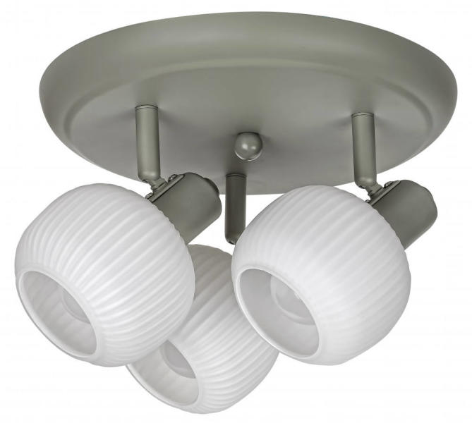Rábalux Soraya mennyezeti lámpa - A lámpa zöld színű fém lámpatestet kombinál fehér üvegbúrákkal, és a lámpa nagyméretű, kerek dísztalp segítségével könnyen rögzíthető a mennyezetre. A búrák felülete bordázott és gömbölyded, alul nyitott. Ennek a hármas spotlámpának három mozgatható lámpafeje van, amelyek segítségével könnyen bevilágíthatjuk a helyisége