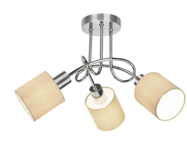 A modern stílusban készült Natina hármas spotlámpa nappalink vagy hálószobánk berendezésének visszafogott darabja lehet. A szatin krómszínű, fém lámpatestet barna textilbúrák egészítik ki, a lámpa kerek dísztalp segítségével rögzíthető a mennyezetre. Az alul nyitott, henger alakú búrák hangulatos megvilágítást biztosítanak a szobában. A spot lámpa jellegzetessé