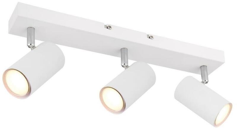 Spotlámpa 35W, GU10 foglalat, Jellemző anyag: fém, Jellemző szín: fehér, nem tartalmaz fényforrást, 230V, Méret: 410mm x 60mm x 120mm (Hosszúság x Szélesség x Magasság), 57911-3W Spotlámpa fehér fém, fehér fém, krómozott fém, LxSzxM: 410x60x120mm, fényforrás nélkül szállítva 3x GU10 35W 230V