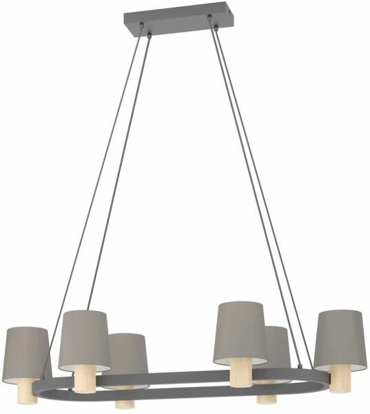 Vintage stílusú beltéri függeszték lámpa az Eglo gyártótól. Fekete, barna acél, textil és fa szerkezet. 6x max 40W, E27. A csomag az égőt nem tartalmazza.