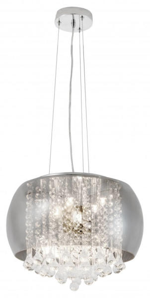 A modern stílus képviselői közé tartozó Ninelle függesztéket azoknak ajánljuk, akik szívesen választanak csillogó, elegáns világítótestet a nappaliba vagy a hálószobába. A fémből készült, krómszínű lámpatestet színezett üvegbúra egészíti ki, amelynek egy részét függönyként takarja a ragyogó üvegkristály dekoráció. A Ninelle olyan, mint egy mennyezetről cs