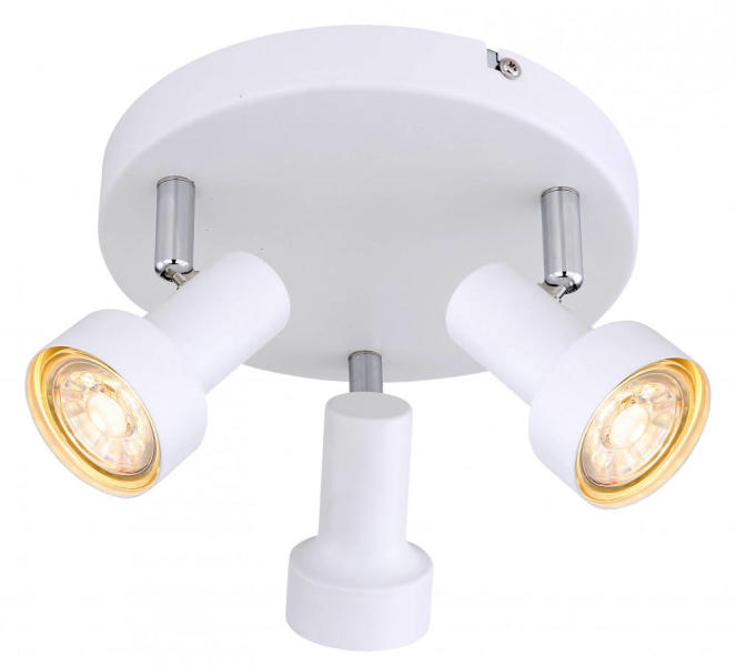 Spotlámpa GU10 foglalat, Jellemző anyag: fém, Jellemző szín: fehér, 230V, Méret: 105mm x 240mm (Hosszúság x Szélesség x Magasság), 5356 A standard stílust képviselő Konrad hármas spotlámpa a nappali, a hálószoba vagy a gyerekszoba berendezésének üde, kellemes darabja lehet. Kiválóan illeszkedik szinte bármely világos, pasztellszínek által meghatározott enteriőrbe. A m