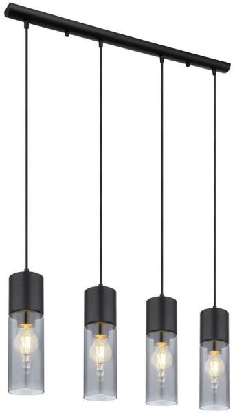 Függeszték, matt fekete fém, füstszínű üveg búra, matt fekete fém, fekete textil kábel, HxSzxM: 800x90x1560mm, exkl. 4x E27 25W 230V