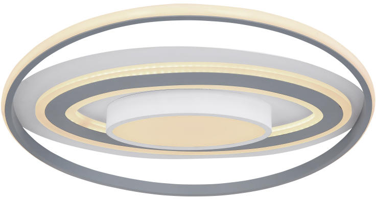 Mennyezeti lámpa króm , tükrös alaplap, fém szürke dekorációval, akril opál búrával. Funkciók: memória, éjszakai fény, színhőmérsékletváltós, fényerő-szabályozható, távirányítóval. Ø:570, H:70, inkl. 1xLED 60W 230V, 2650lm, CCT 3.000-6.00