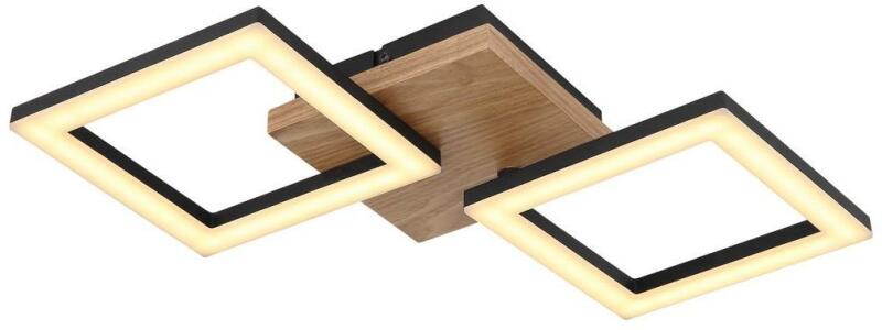 Mennyezeti Lámpa 18W, LED, 1200lm, 3000K, Jellemző anyag: fém, Jellemző szín: fekete matt, melegfehér, 230V, Méret: 460mm x 225mm x 70mm (Hosszúság x Szélesség x Magasság), 67280-18 Mennyezeti lámpa fém fekete matt, fa sötétbarna, műanyag opál, LxSzxM. : 460x225x70mm, LED-del 18W 230V, 2100lm bemenet, 1200lm kimenet, 3000K