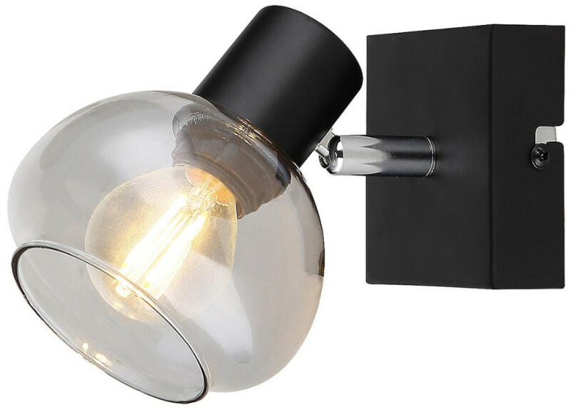 Spotlámpa E14 foglalat, Jellemző anyag: fém, Jellemző szín: fekete, nem tartalmaz fényforrást, 230V, Méret: 150mm x 115mm x 100mm (Hosszúság x Szélesség x Magasság), 3295 A modern stílusú Sullivan spotlámpát elsősorban a nappaliba vagy a hálószobába ajánljuk. A fémből készült, fekete színű lámpatestet gömbölyded, színezett üvegbúra egészíti ki, a lámpa szöglet