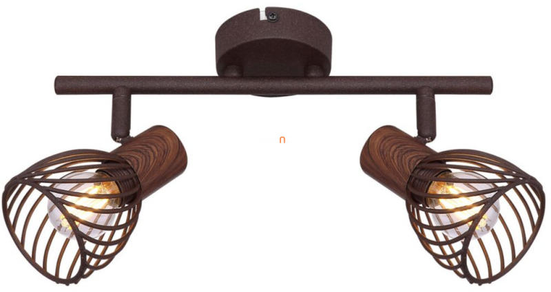z Isabelle sorozat ezen reflektorfénye meggyőzi retro stílusát. A rozsda színű fém és a sötétbarna fa kombinációja gazdagítja az otthoni vagy hálószobában. A reflektorfényben két kerek lámpaernyő található, amelyek a rácsmintán keresztül gyönyörű mintát hoznak a helyiségben. A rugalmas reflektorok egyenes sínhez vannak rögzítve. A fényforrás szabad választása (