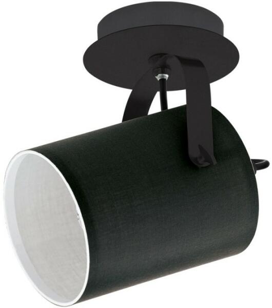 EGLO 33645 VILLABATE , beltéri spot lámpa, E27 foglalattal, MAX 1X10W teljesítménnyel, fekete / acél lámpatest, IP20, fekete, fehér / textil búrával, , kapcsoló nélkül