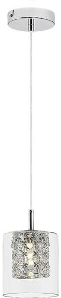 A modern és elegáns Duchess függeszték látványos kiegészítője lehet nappalink, étkezőnk vagy hálószobánk berendezésének. A krómszínű, vasból készült lámpatestet átlátszó, henger alakú üvegbúra teszi teljessé, amely látni engedi a lámpa belsejében a csodás kristálydekort. A Duchess egy darab, legfeljebb 40 W teljesítményű fényforrással használható, a foglal