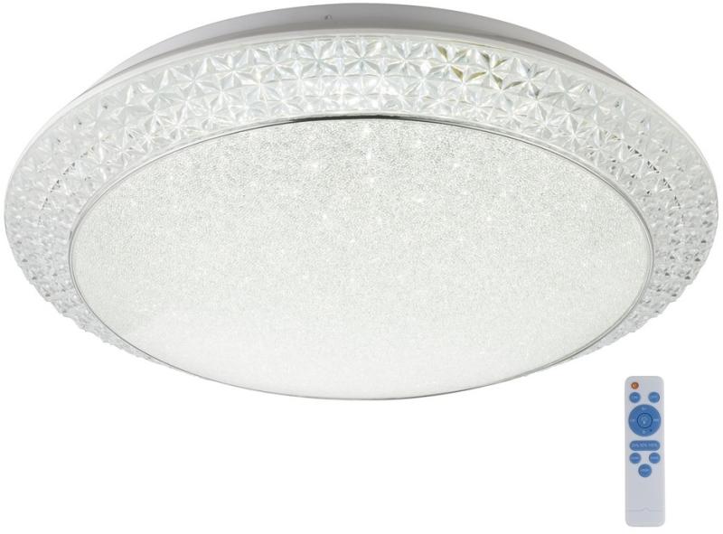 A fent megadott ár 1 termékre vonatkozik! Mennyezeti lámpa metál fehér, akril szatén, plasztik kristály, áttetsző, fényerő-szabályozható, távirányítós, színbeállítási funkció, D:510, H:120, Tartozéka: 1xLED 40W 230V, 2090lm Műszaki adatok A lámpa anyaga: fém Foglalat típus: beépített LED modul IP védettség: IP20 Búra anyaga: akril Energiaosztály: A+ Jellemzők A l