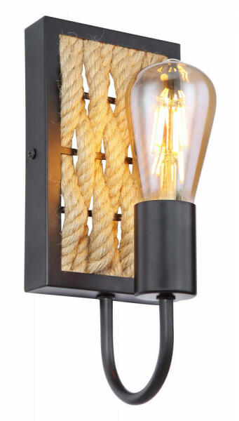 Műszaki adatok: E27 1x 40 Watt Foglalat típusa: E27 Fényforrást tartalmaz: nem Váz anyaga, színe: fém, matt fekete Búra anyaga, színe: kender kötél, barna Magasság: 280 mm Szélesség: 120 mm Súly: 0,51 kg IP védettség: IP20 Üzemi feszültség: 230 Volt EAN kód: 9007371427888
