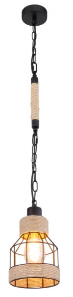 Függeszték matt fekete fém váz, barna kenderkötéllel körbefonva. Ø:350, H:1350, exkl. 1xE27 60W 230V