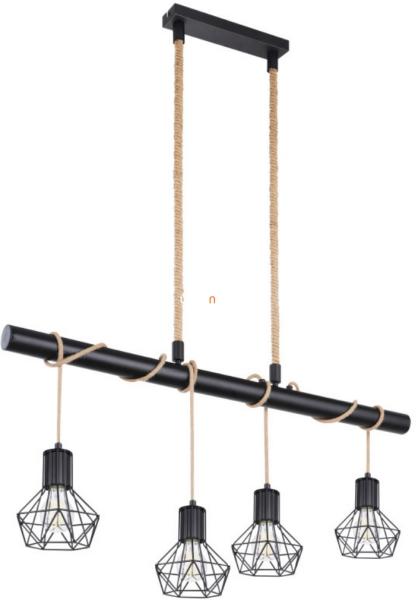 Függeszték fekete fém és natúr kenderkötél anyagokból. LxBxH:1000x150x1200, exkl. 4xE27 60W 230V Energiacímke: A++-E Használt feszültség: 230V Fényforrás teljesítménye (Watt): 60W Fényforrás foglalata: E27 Foglalatok száma: 4 Magasság: 1200mm Szélesség: 150mm Hosszúság: 1000mm Szállítási idő: Átlagosan 1,5-2 hét, a visszaigazolástól függően.