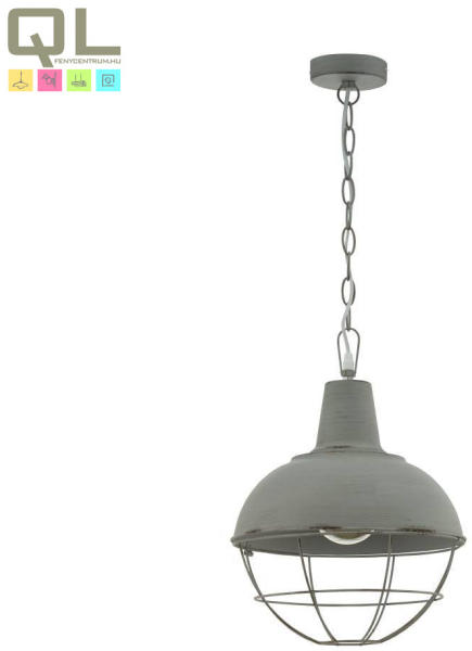 A CANNINGTON 1 függeszték szürkés-patinás fém felülettel és drótvázas lámpaernyővel rendelkezik. A design egy dekoratív lánccal rendelkezik, amely kiegészíti a lámpa jellegzetes stílusát. A medál autentikus, szorongatott megjelenésével tökéletesen beilleszthető egy ipari stílusú enteriőrbe, akár a nappaliba, akár az étkezőasztal fölé. A kép izzószálas izzót ne