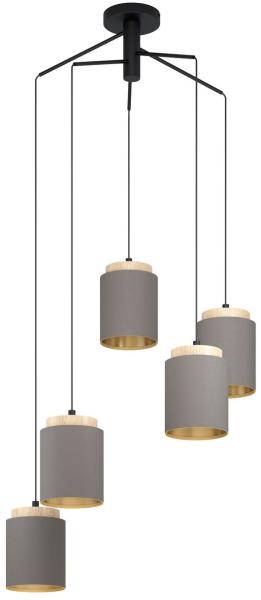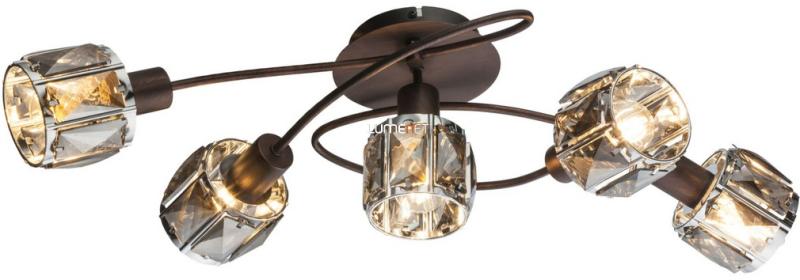 Mennyezeti lámpa, barna, króm, üveg-kristály füstszínű, Hosszúság x Szélesség x Magasság: 614x360x210 mm, Foglalat típusa: 5xE14, 40W, 230V. A lámpatest a következő energiaosztályú égőkkel tud működni: A++, A+, A, B, C, D, E.
