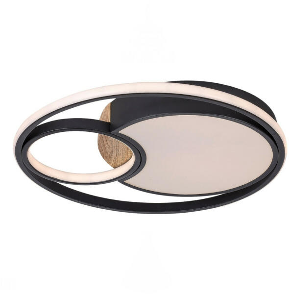 RÁBALUX Leola beltéri mennyezeti lámpa LED 81W, D48cm (71044) A Leola okos mennyezeti lámpa különleges formatervezésével, nagy fényerejével és számos extra funkciójával fantasztikus választás lehet számos modern nappaliba. A fémből készült matt fekete lámpát fehér műanyagbúra egészíti ki, miközben a dizájn jellegzetességét a kisebb és nagyobb kör alakú elemek kom