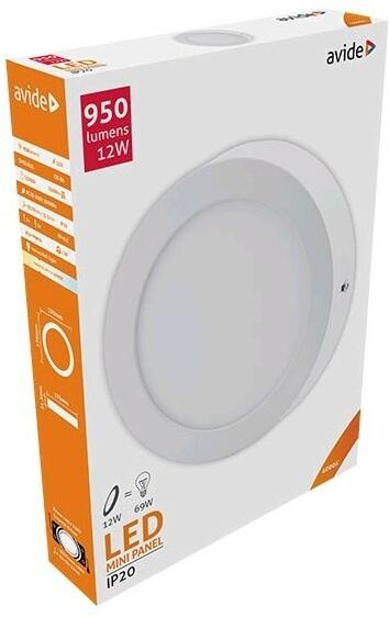 Avide mennyezeti LED lámpa falon kívüli 12W 950lm 170mm Szabályozható Színhőmérséklet: Nem Garancia:3 év Szín: Fehér Anyaga: Alumínium Várható élettartam: 25 000 óra Foglalat: nincs Teljesítmény: 12 W Hagyományos watt megfelelőség: 69 W Feszültség: 220-240 V Működési hőmérséklet: -20 - +40°C IP Védettség: IP20 Átmérő: 170 mm Magasság: 31,5 mm Színhőmérsékle
