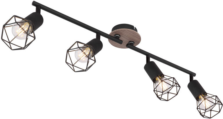 Ez a fekete-fa mennyezeti lámpa négy foglalattal elegáns és modern megjelenést kölcsönöz bármely helyiségnek. A mennyezeti lámpa, amely fekete és fa kombinációjával hódít, tökéletes választás azok számára, akik a modern és természetes stílus ötvözetét keresik. A lámpa négy E27 foglalattal rendelkezik, így lehetőséget ad a fényforrások szabad megválasztására,